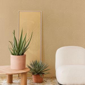Также завораживают обои с оптической глубиной глиняного рельефа, изящно извилистой линией на грубо нарисованном фоне и ярким разноцветным абстрактным мотивом.